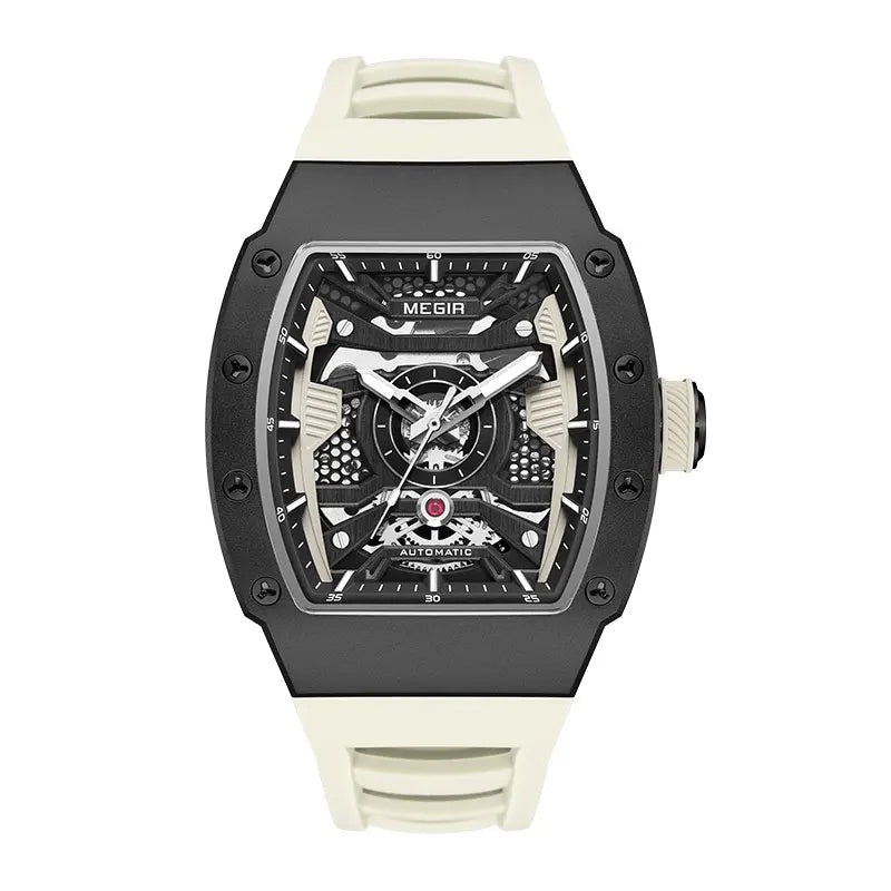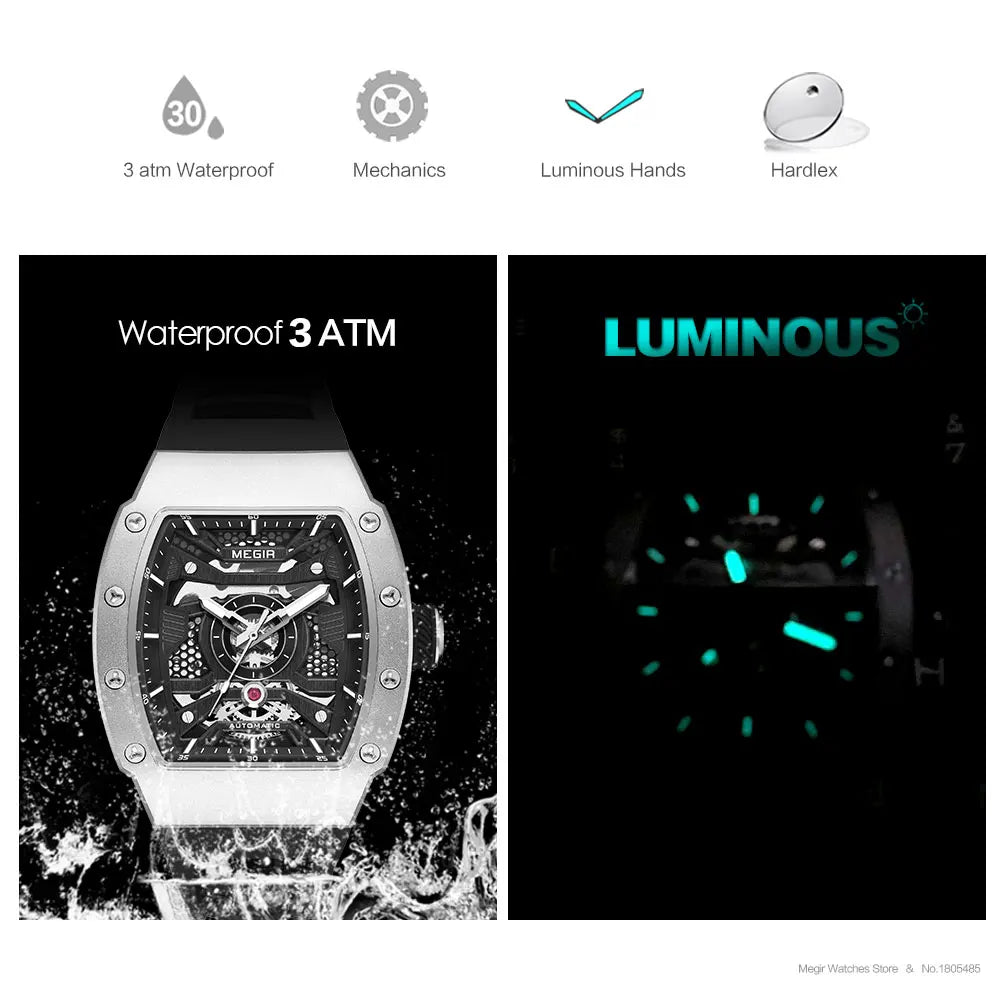 MEGIR Men's Automatic Mechanical Watch with Stainless Steel Case Sillicone Strap Fashion Waterproof Luminous Wristwatch 8604